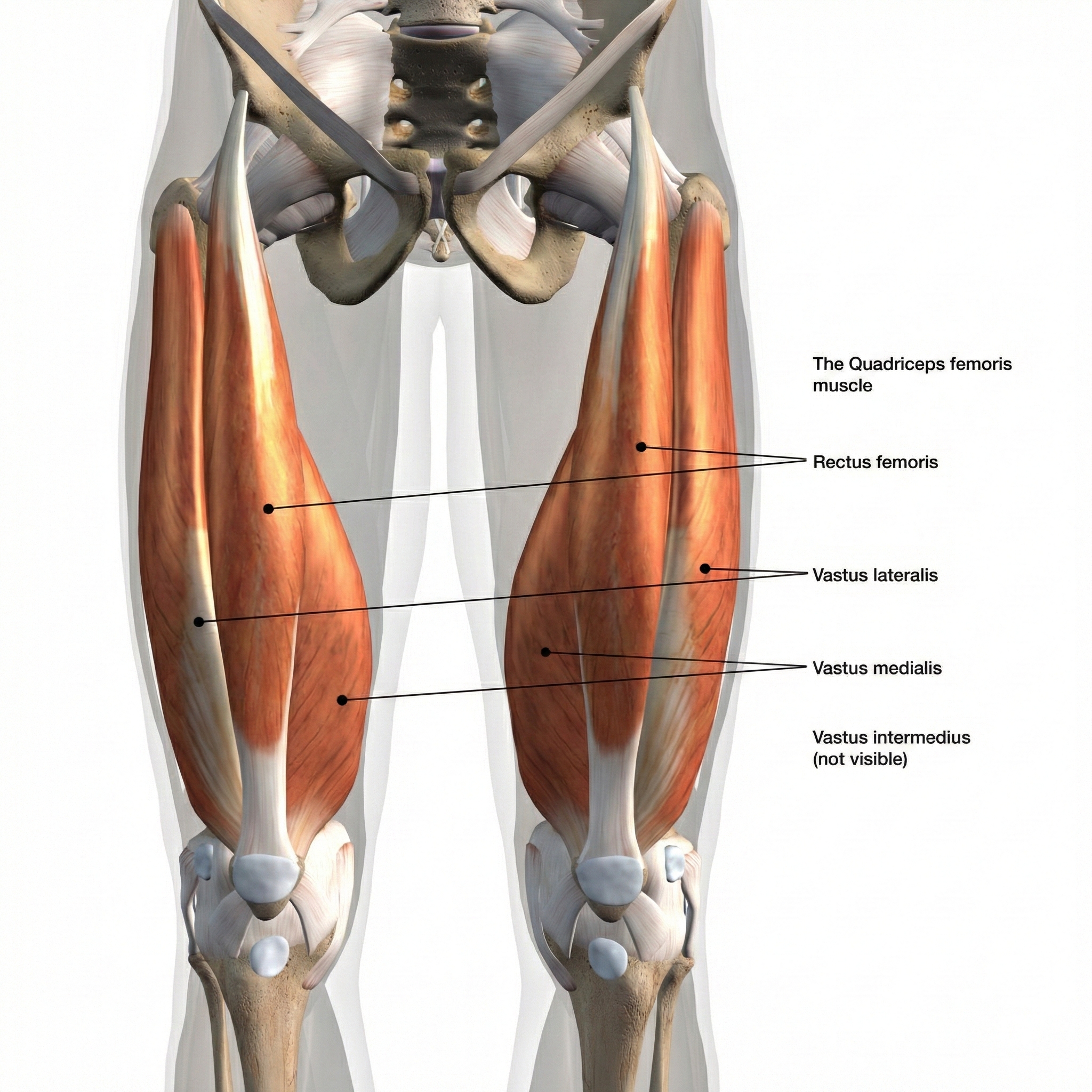 quadriceps femoris: the great leg extensor composite muscle consisting of the rectus femoris, vastus lateralis, vastus medialis, and vastus intermedius.