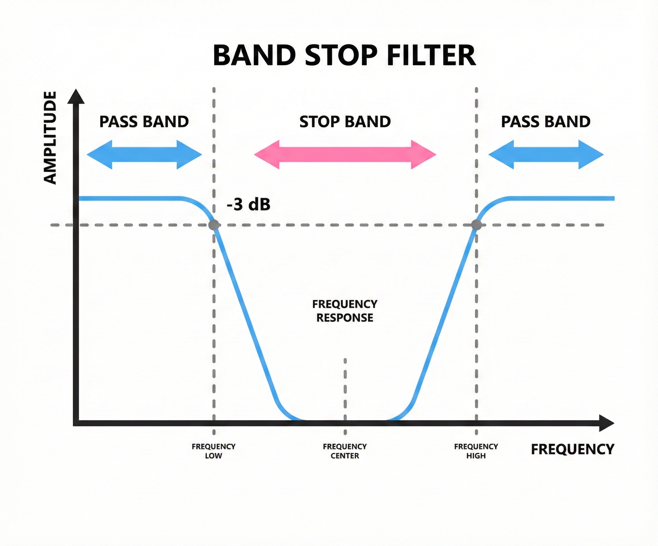 Electrical powerlines operate at 60 Hz in North America (50 Hz in many other countries), and this frequency can sneak into EEG recordings as a steady hum. A notch filter removes a very narrow band of frequencies, cutting out the powerline interference while leaving nearby frequencies intact.