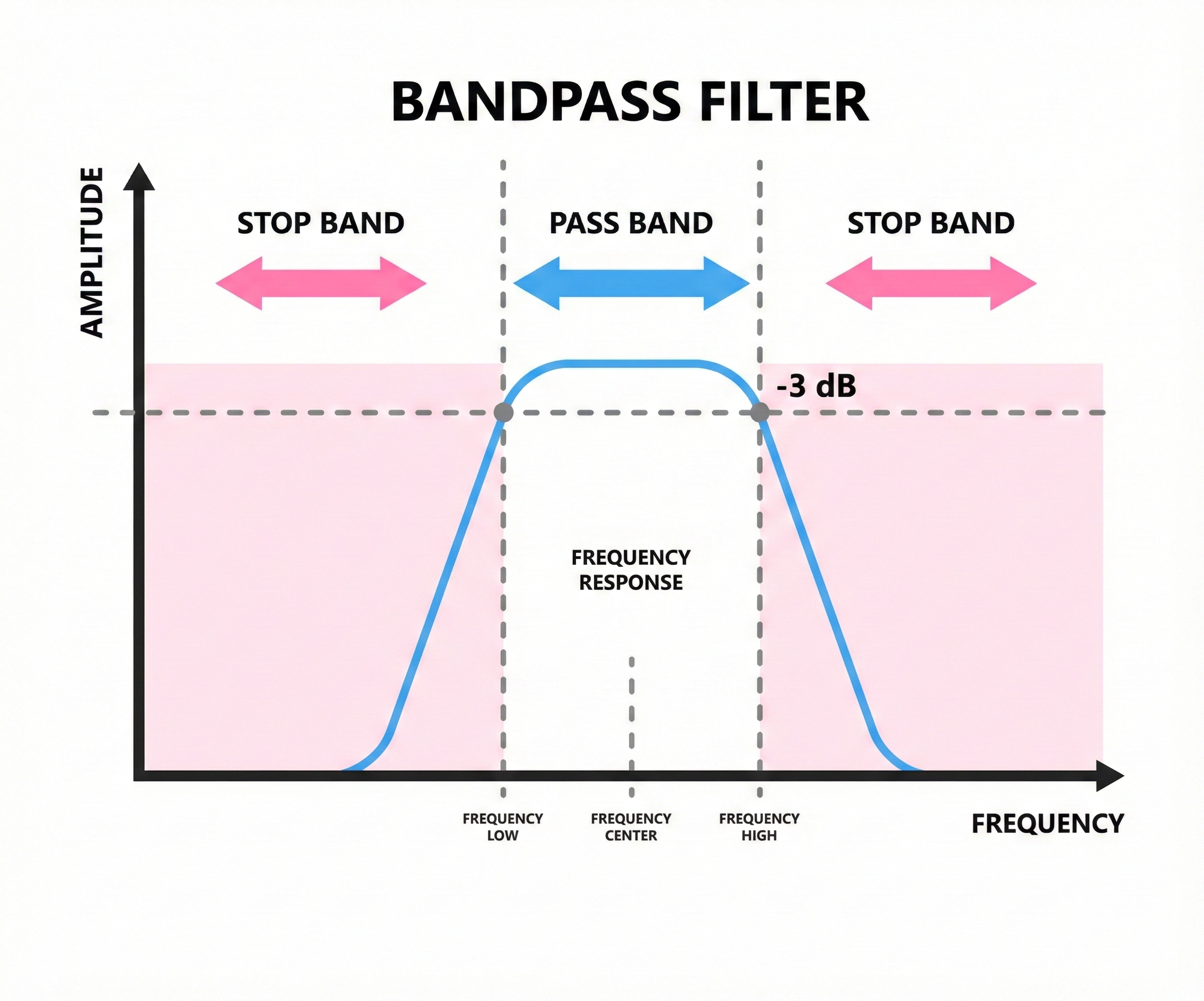 bandpass filter: a filter that passes only frequencies within a specified range.