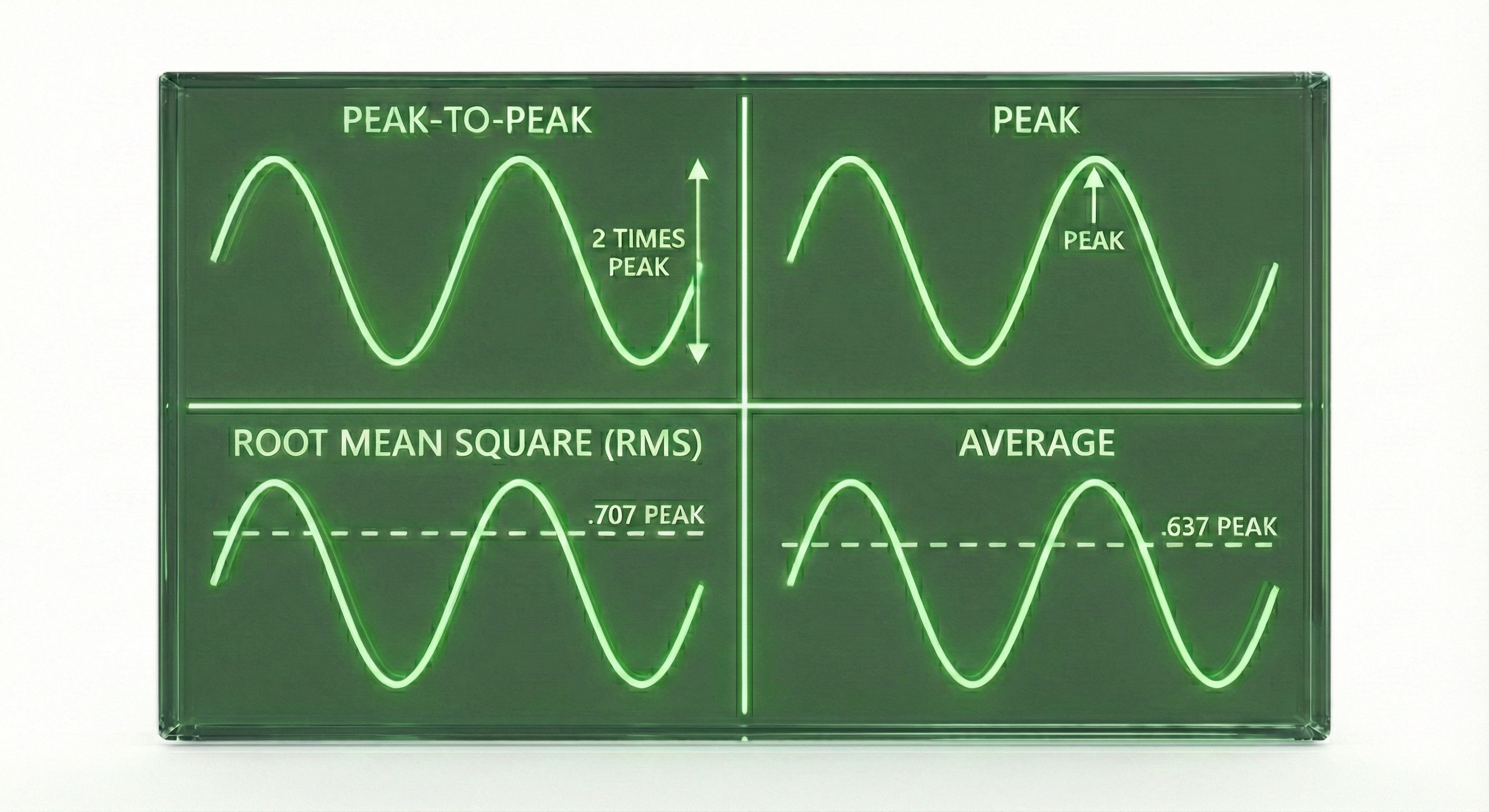 peak-to-peak: amplitude measured from the lowest valley to highest peak of a wave.
