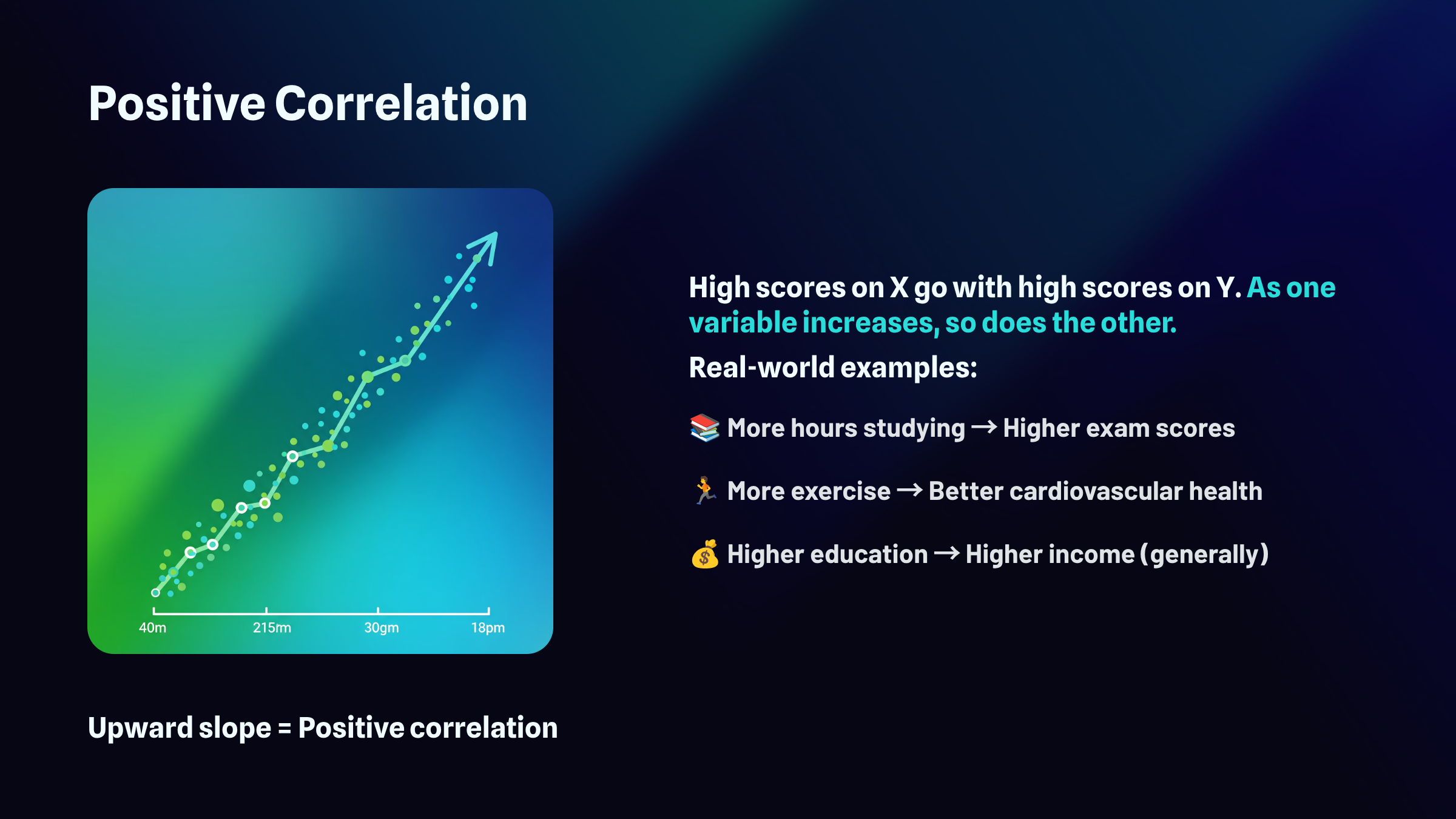 First, both of your variables need to be continuous, meaning they can take on a wide range of values along a scale. Height works. So do test scores, reaction times, and temperature readings. What doesn't work are categories like "yes or no" or "red, blue, green." You need numbers that can slide up and down, not labels that simply sort things into buckets.