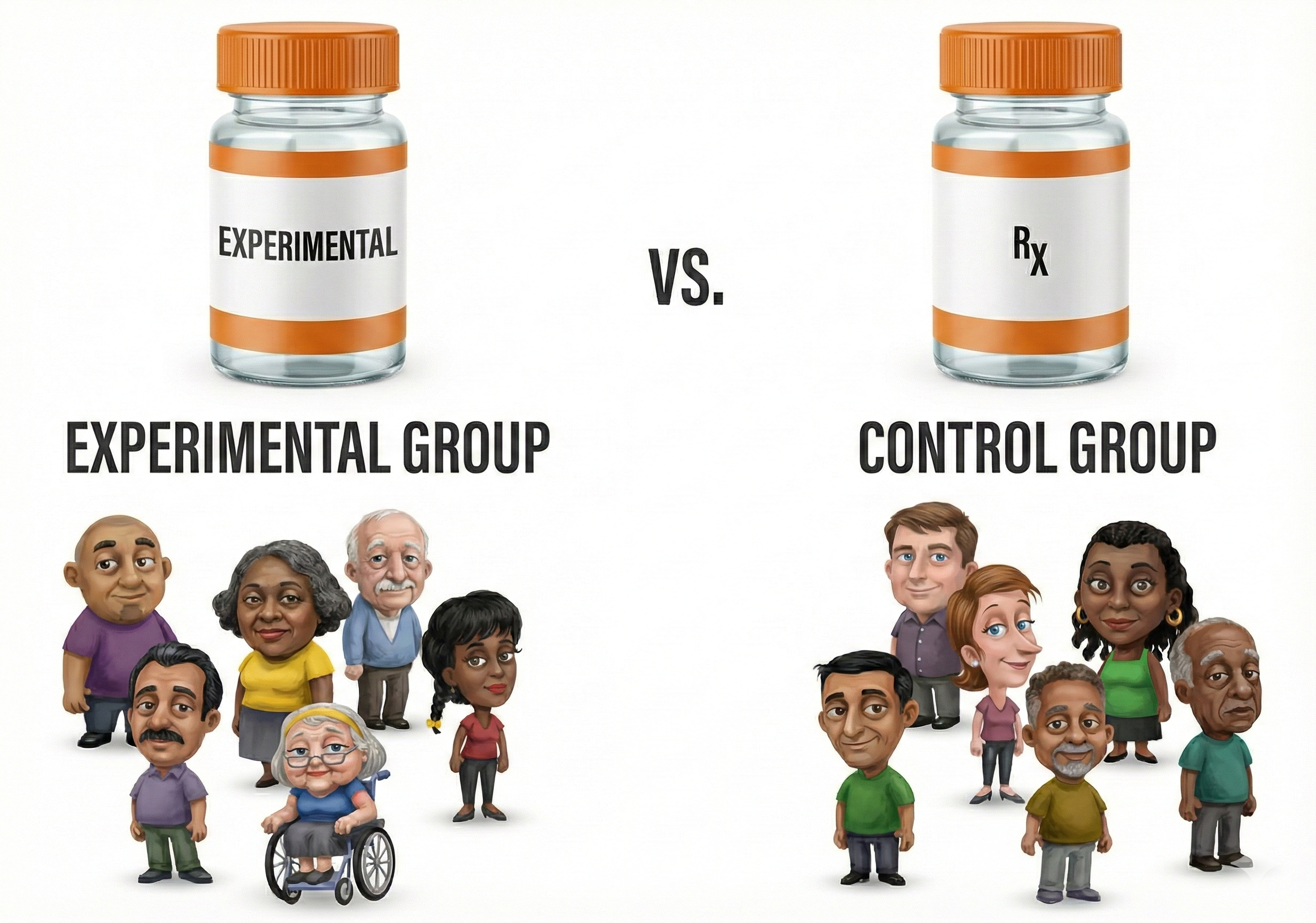 placebo control groups: groups receiving treatment indistinguishable from the real intervention but without the active ingredient.