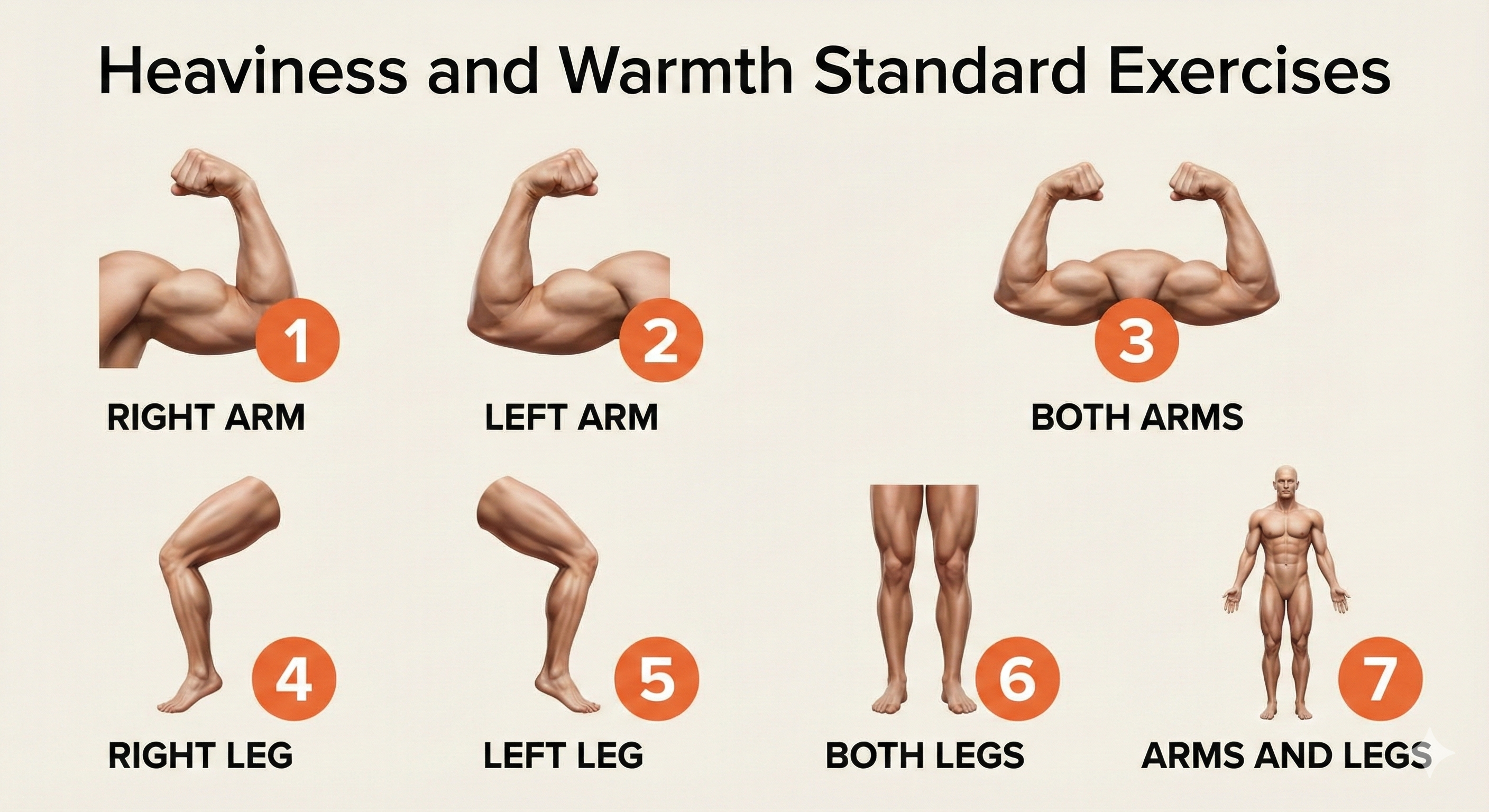 AT's heaviness and warmth standard exercises (themes 1-2) are divided into seven parts.
