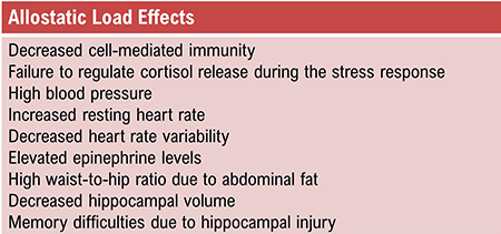 Seeman, T. E., Singer, B. H., Rowe, J. W., Horwitz, R. I., & McEwen, B. S. (1997). Price of adaptation—allostatic load and its health consequences. Archives of Internal Medicine, 157, 2259-2268. PMID: 9343003