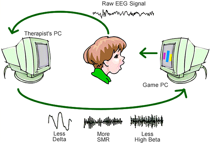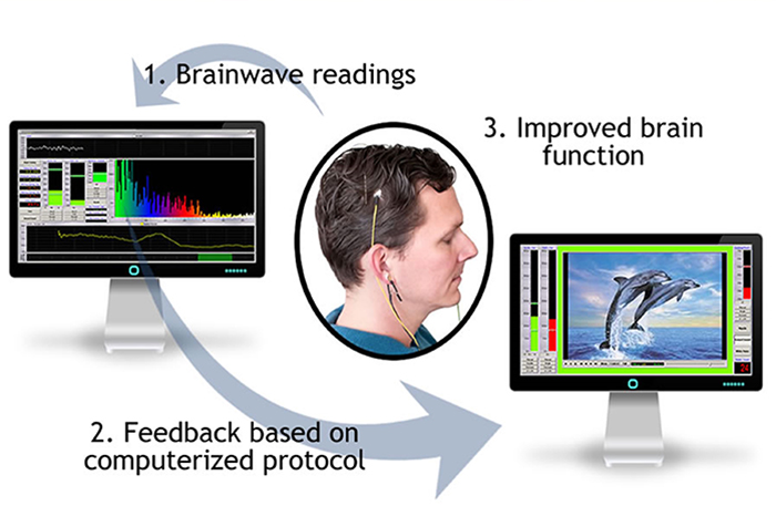 NFT is preceded by an objective assessment of brain activity and psychological status. During training, sensors are placed on the scalp and then connected to sensitive electronics and computer software that detect, amplify, and record specific brain activity. Resulting information is fed back to the trainee virtually instantaneously with the conceptual understanding that changes in the feedback signal indicate whether or not the trainee's brain activity is within the designated range. Based on this feedback, various principles of learning and practitioner guidance, changes in brain patterns occur and are associated with positive changes in physical, emotional, and cognitive states. Often the trainee is not consciously aware of the mechanisms by which such changes are accomplished although people routinely acquire a 'felt sense' of these positive changes and often are able to access these states outside the feedback session.