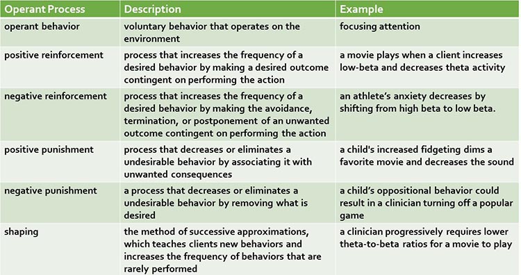 Biofeedback training (BFT) and neurofeedback training (NFT) involve the same learning processes we use to develop motor skills or master a videogame. An individual acts (breathes effortlessly), observes the results (heart rate variability increases), and repeats this action during meetings with clients. Clients actively learn to regulate their psychophysiology (Thompson & Thompson, 2016).