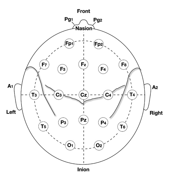 Peniston's (1989, 1990) initial approach used the O1 electrode location based on the 10-20 international electrode placement system. Subsequent practitioners have also utilized the Pz electrode location or the P3 and P4 electrode locations to facilitate two-channel A-T training. John Balven adapted the diagram below from Fisch (1999).