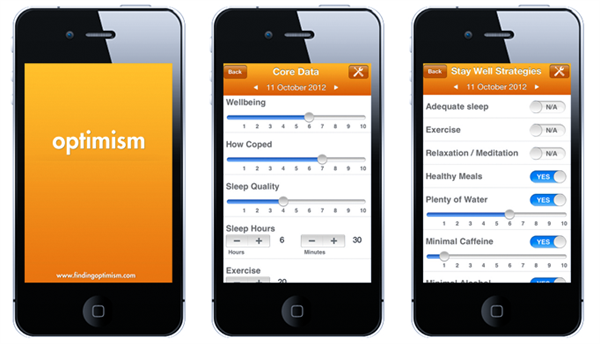 Self-monitoring benefits the client by increasing their self-awareness in day-to-day situations and potentially strengthening their ability to self-regulate “internal” subjective experiences such as emotion, cognition, and tonic or reactive physiological states in service of effective behavior. Graphic courtesy of the Optimism family of mental health applications.