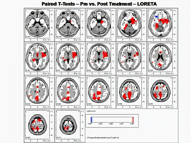 LORETA neurofeedback: low resolution electromagnetic tomography (LORETA). Pascual-Marqui's (1994) mathematical inverse solution to identify the cortical sources of 19-electrode quantitative data acquired from the scalp.